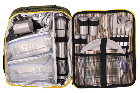 Если вы не любите тратить время на подготовку к поездкам и длительные сборы на природу, тогда сумка для пикника, рассчитанная на 1 персону – именно, то, что вам нужно! Такой набор станет прекрасным подарком для путешественника, охотника, рыболова.
