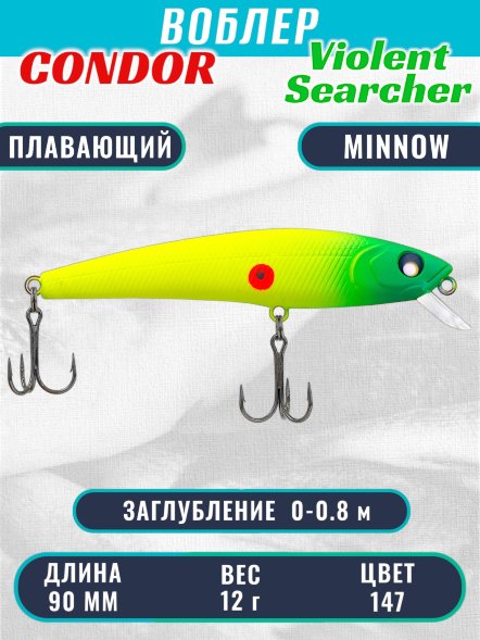➤ Какие характеристики у товара "Воблер Condor Violent Searcher VSR90 , размер 90 мм вес 12,0 гр заглубление 0-0,8 м, цвет 147"?